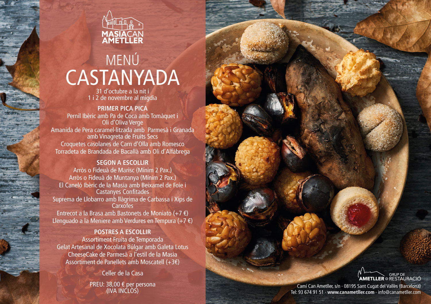 S’acaba el mes d’octubre i amb ell arriba la Castanyada. Per això, us hem preparat un menú especial amb productes de temporada on no poden faltar ingredients tan típics com les castanyes i els moniatos.