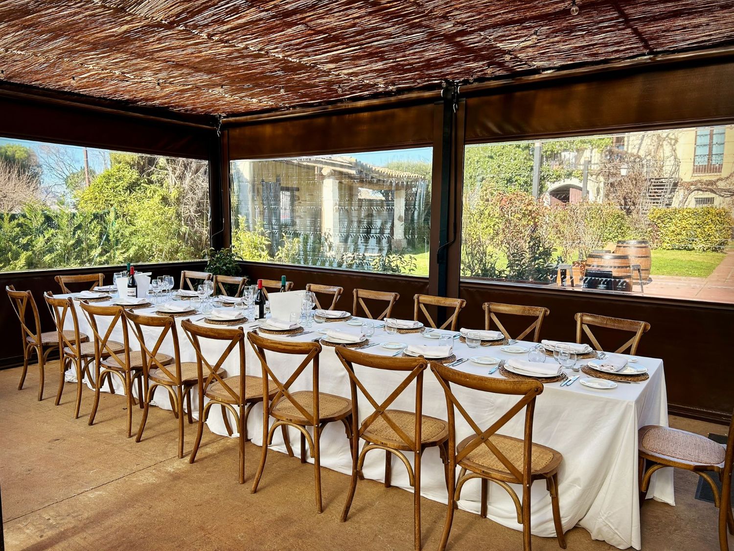 La Pérgola es el nuevo espacio de nuestra Masía, rodeado de naturaleza y con excepcionales vistas a la cordillera de Collserola. Situada en un entorno privilegiado, esta amplia terraza combina la frescura del aire libre con la comodidad de un espacio diseñado para acoger todo tipo de eventos.